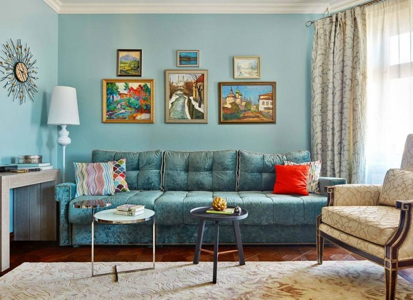 Сочетание цвета с другими цветами в интерьере гостиной
