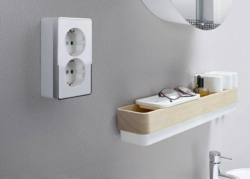 Размещение комплекта розеток в интерьере ванной комнатыИсточник Pinterest