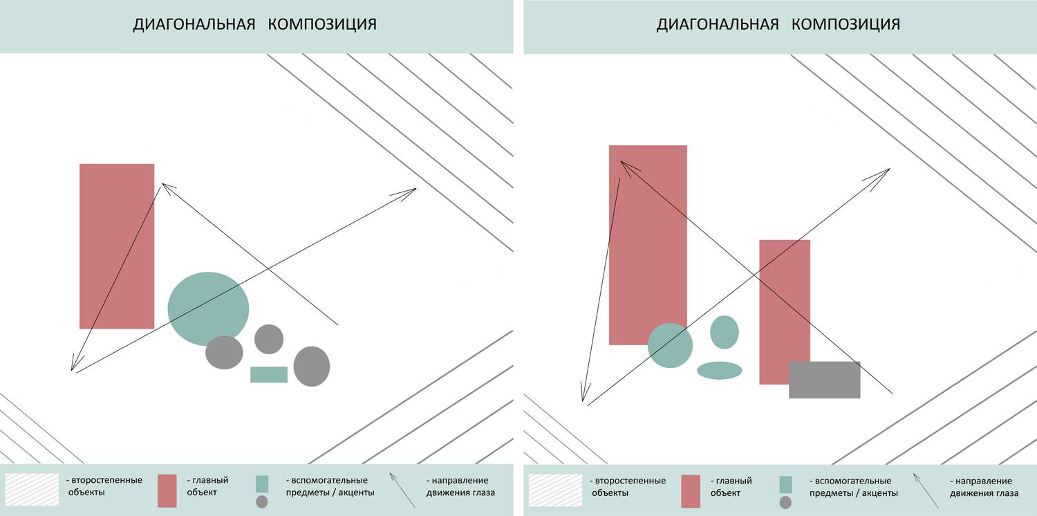 - Зрение в центральной композиции следит за предметами, начиная от центра по горизонтали или вертикали, перемещаясь между ними.