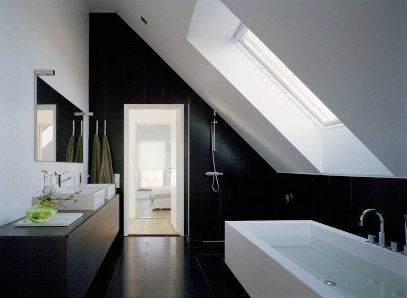 Масса преимуществ ванной комнаты на мансарде заставляет нас более внимательно присматриваться к подобным проектам.