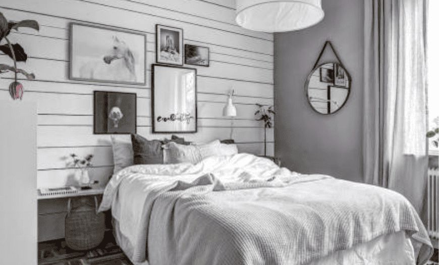 При оформлении спальни в скандинавском стиле важно выжать из комнаты максимум. Главная задача – увеличить количество света и пространства, и именно на это работают все дизайнерские приемы