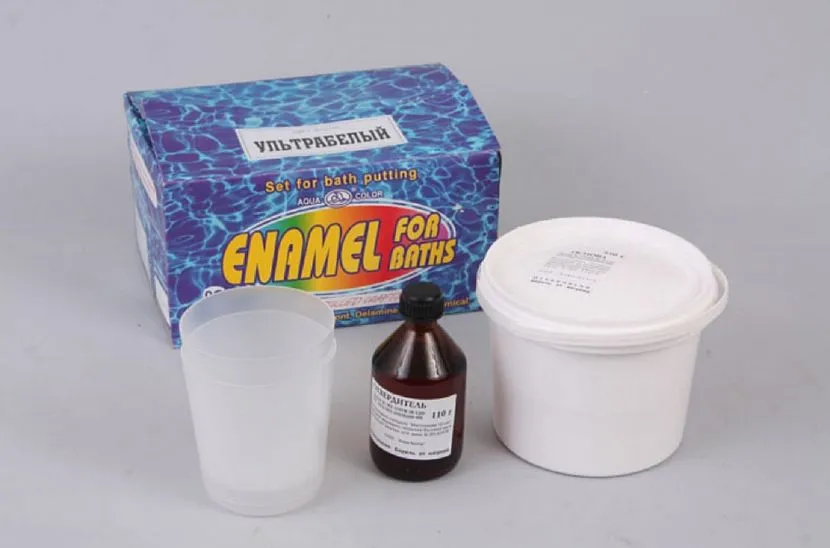 Полимерный материал на основе акрила и отвердителя выпускают в жидком виде. Вещество применяют для реконструкции поверхностей чугунных и стальных ванн. После застывания на стенках сантехники возникает прочная пленка, толщиной в 3-7 мм. Плюсы препарата:
