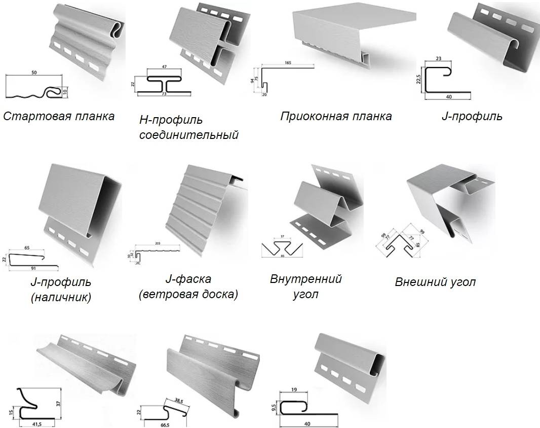 Внешне панель может имитировать корабельную доску, обшивку под «ёлочку» или бревенчатую стену (блок хаус). Помимо самого отделочного материала в продаже представлен полный комплекс доборных элементов, без которых не получится выполнить монтаж. К ним можно отнести стартовый профиль, наружный и внутренний угол, торцевой и соединительный профиль, финишную планку и софиты для подшивки карнизного свеса крыши.