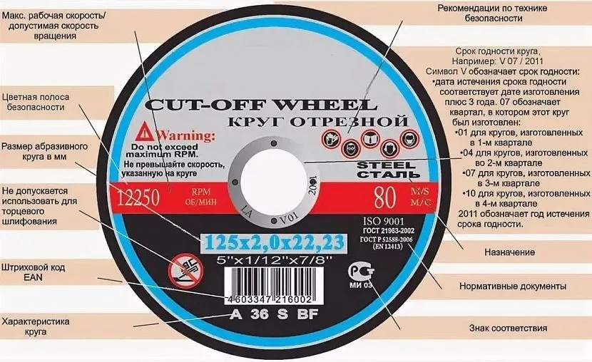На поверхность каждого диска нанесена информация и маркировка, которую необходимо уметь расшифровыватьИсточник Nevainstrument.ru