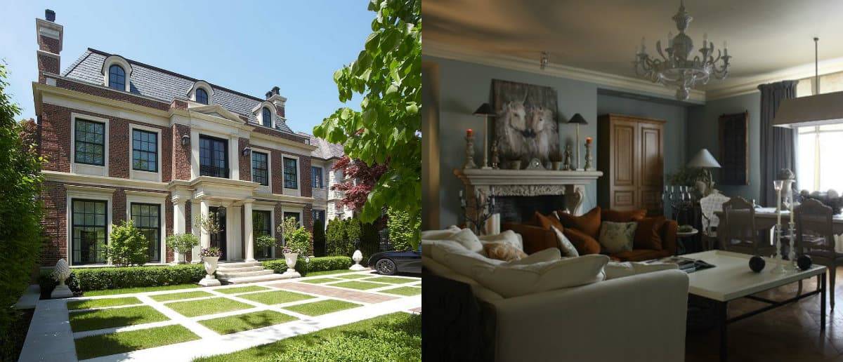 Характерной особенностью стиля также является наличие в гостиной камина с изысканной отделкой мрамором, в духе классики