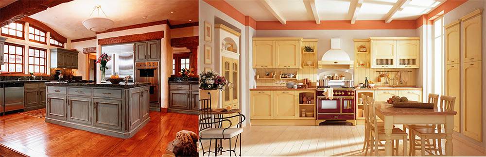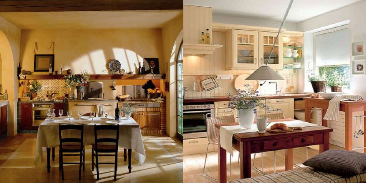 - Если Вы хотите внести нотку ретро, выберите открытую или частично открытую планировку полок. Можно сделать акцент на яркой плите или печи.