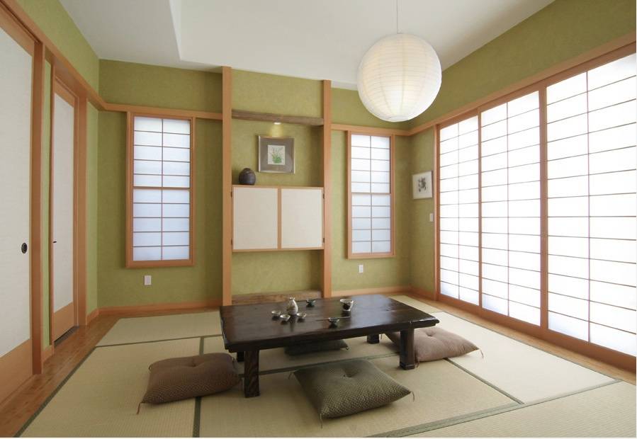 Европейскому человеку нелегко приходится в японском интерьере. Потому что тут все рассчитано для жизни на полу, все предметы, находящиеся в комнатах расположены так, что ими удобно пользоваться сидя. В японской планировке минимальное количество комнат, которые необходимы для жизнедеятельности человека и используются в основном для защиты от солнца или непогоды.
