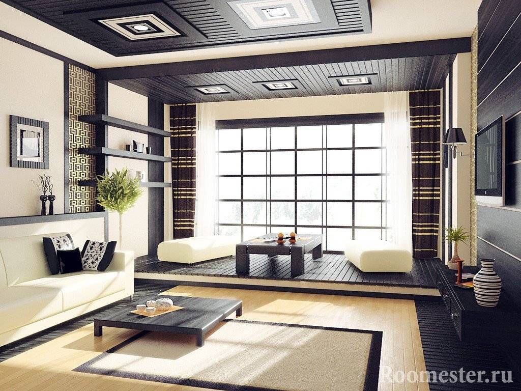 Сложность в оформлении интерьера в японском стиле вызывает потолок.