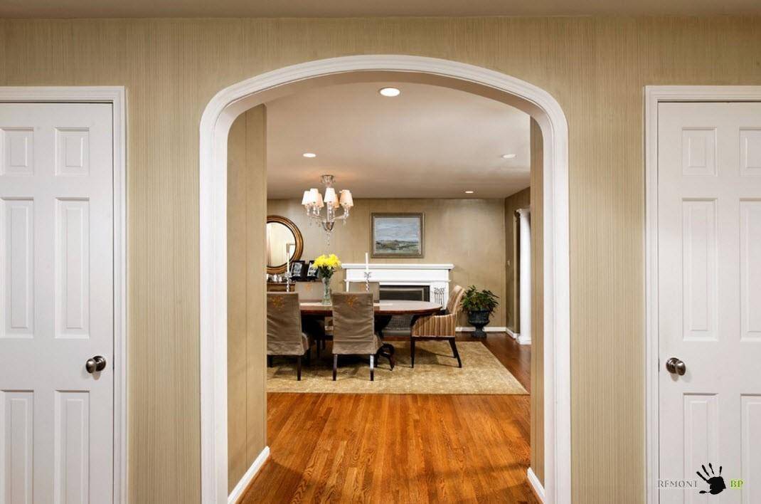Очень похож на обычный проем, да это по сути он и есть, только без дверного полотна. Для большей оригинальности часто сопровождается деревянными резными элементами в виде колонн по бокам. В таком виде хорош для классических интерьеров, а также этно-стиле — греческом или римском, в зависимости от типа колонн.