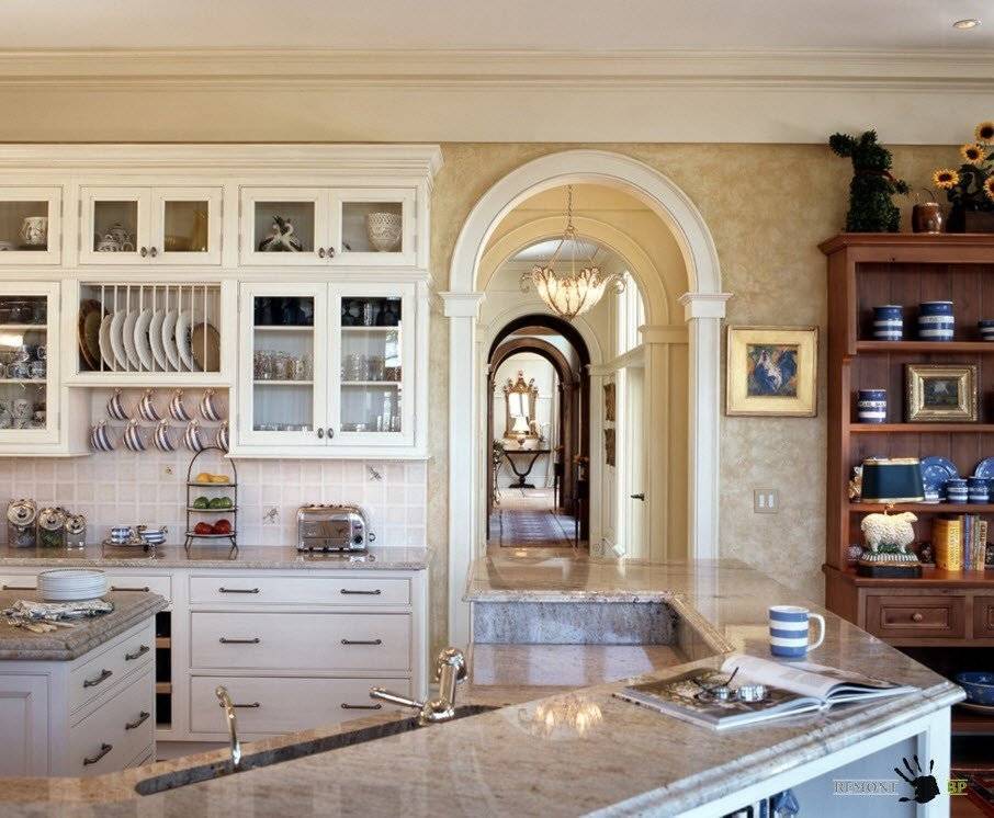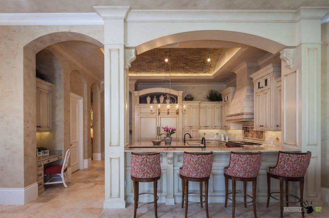 арка напоминает конструкции, которыми украшались дворцы, гаремы и просто дома состоятельных жителей во времена османской империи. Безусловно, для подобного исполнения арки необходима поддержка всего интерьера – особенности средиземноморского исполнения отделки и меблировки создадут более гармоничный образ помещения.