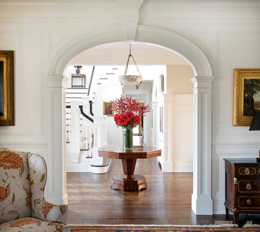 Межкомнатная арка, декорированная молдингами, карнизами и лепниной отлично подходит как для классического интерьера, так и для его вариаций.