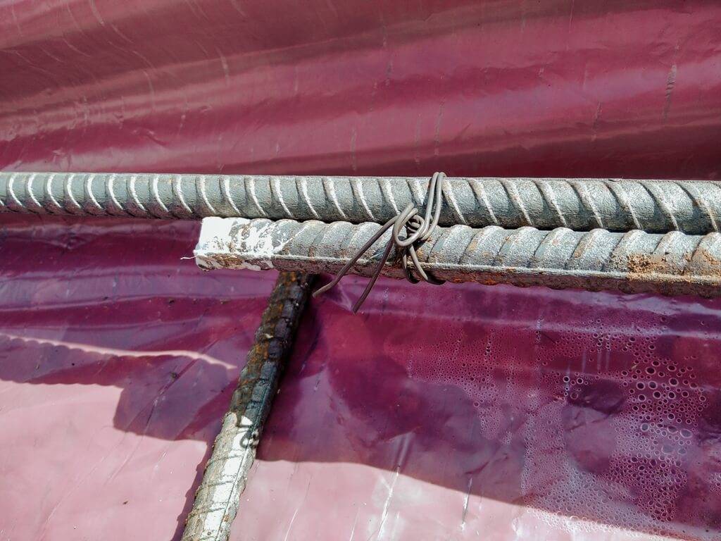 металлокаркас не должен выступать за пределы бетонной конструкции, важно предусмотреть защитный слой в 50-60 см для защиты от коррозии