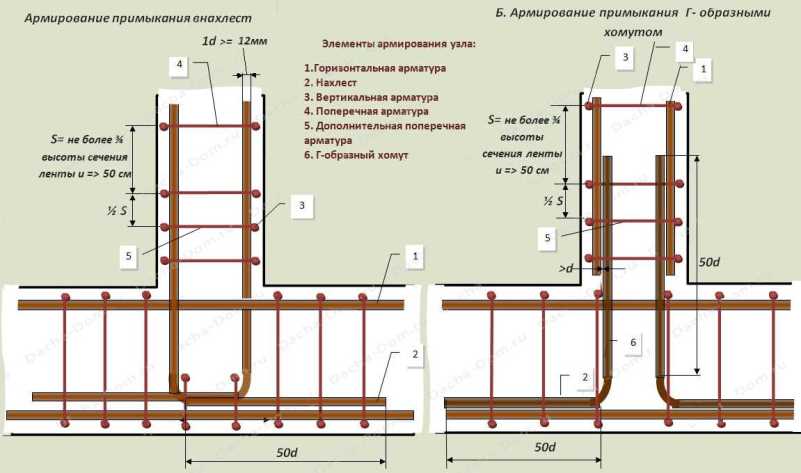 Армирование примыкания стен фундамента Схема правильного и неправильного армирования тупых углов