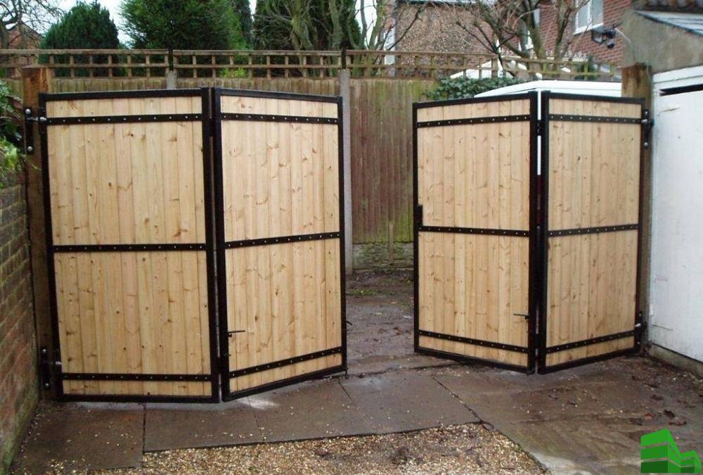 Третий тип – двухстворчатые распашные. Они признаны самыми популярными воротами. Несмотря на то, что они состоят из двух створок, их вес меньше, чем у одностворчатых ворот. Это неоспоримое преимущество, потому что необходимость в дополнительном использовании столбов отпадает. Калитку можно врезать в воротное полотно без крепления на опорные стойки.