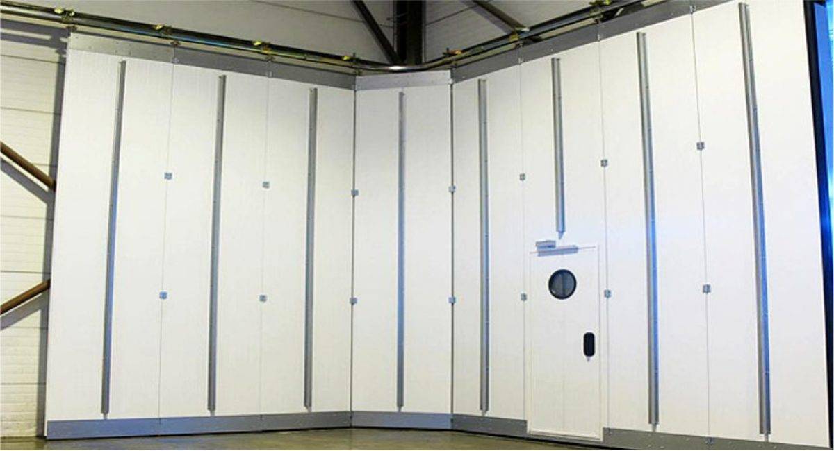 Пятая разновидность – подъемно-секционные. Конструкцию с успехом устанавливают на гаражные помещения в частных и промышленных секторах. Сооружение принято считать разновидностью складных ворот. Полотно состоит из нескольких секций, скрепленных между собой.