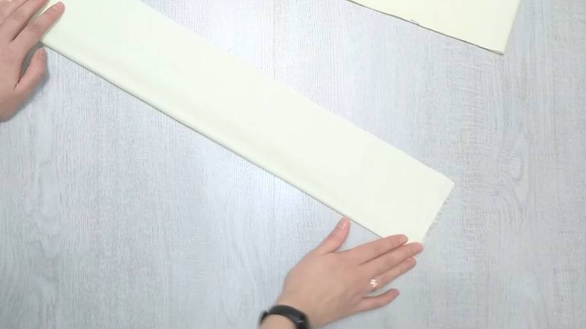 Чтобы рассчитать длину рюш, берем отрезы, длина которых вдвое превышает требуемое значение. Сшиваем отрезы в одну ленту. 5