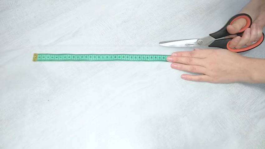 Для начала от хлопка делаем отрез для шапочки размером 2 метра на 40 см. 2