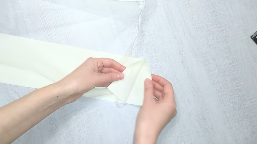 Складываем готовую полосу по всей длине и отутюживаем на лицевую сторону. 6