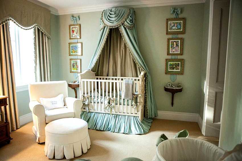 Дизайнеры, занимающиеся оформлением интерьеров, предлагают отказаться от традиционных цветовых решений при выборе балдахина: розовый — для девочек, синий — для мальчиков.