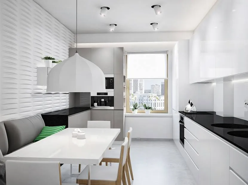 На деле белая кухня одна из самых немарких и прекрасно сочетается с любыми отделочными материалами.