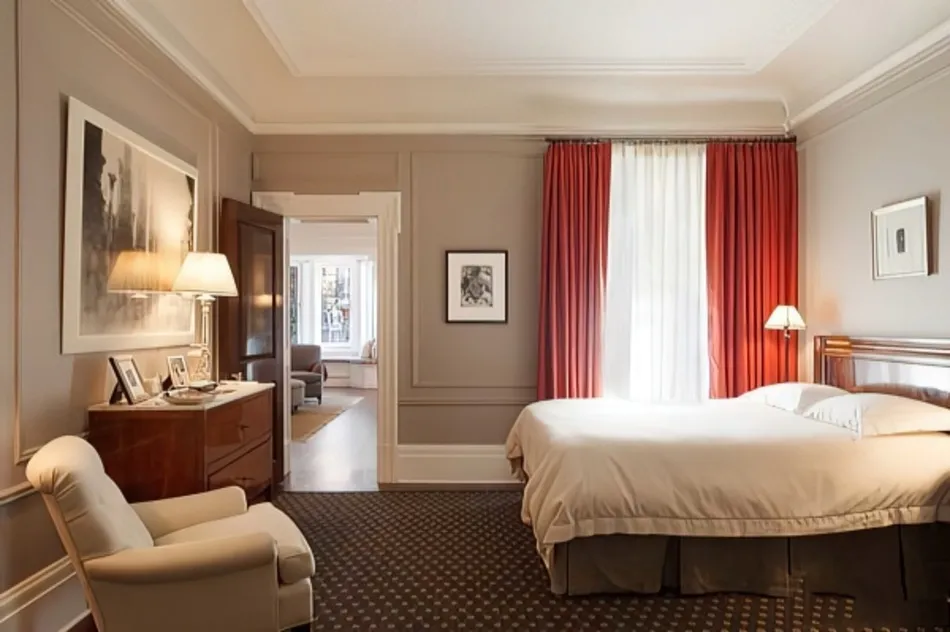 В интерьере спальни красного цвета может быть часть текстиля, несколько декоративных деталей