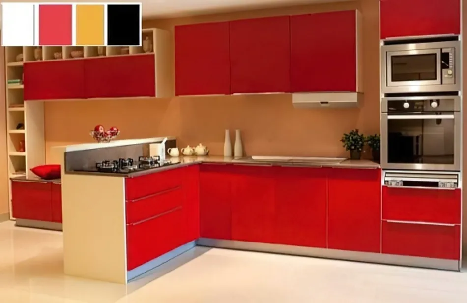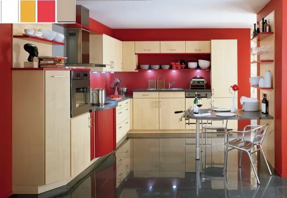 Место, где красный может быть доминирующим цветом — кухня. Тут нужна высокая активность и этот цвет вам придаст бодрости. А, заодно, он еще и повысит аппетит.