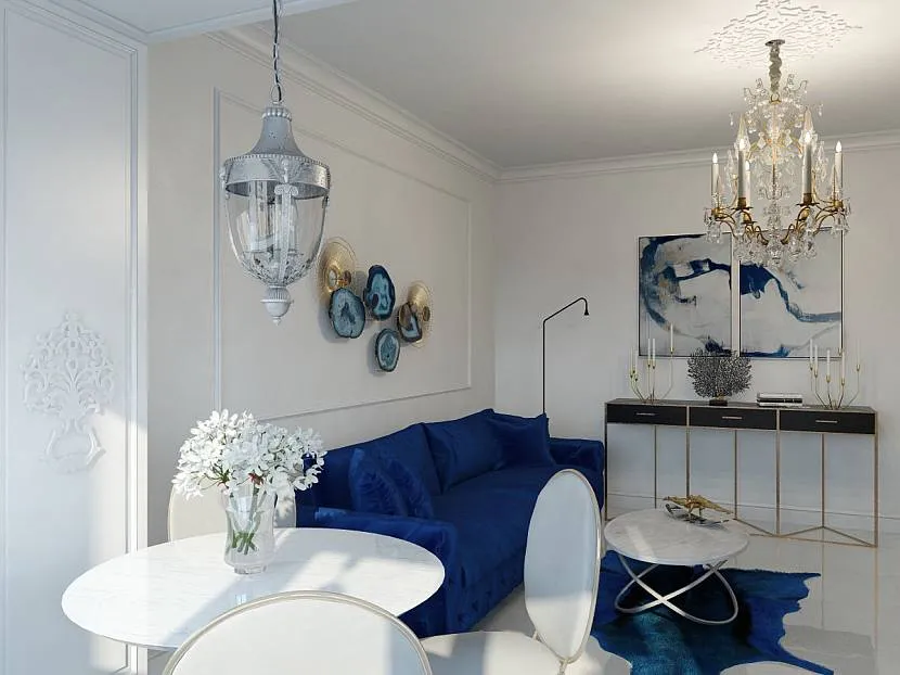 Важно знать, что синий цвет лучше смотрится в хорошо освещенных помещениях. Комнаты, окна которых выходят на север, могут казаться тусклыми и неуютными