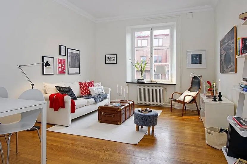 Белый пол позволяет воплотить в интерьере самые различные задумки и цветовые решения. Он является универсальным основанием под предметы мебели любых оттенков. Наиболее стильно выглядят помещения, в которых пол, потолок и стены отделаны белыми материалами, а яркий акцент сделан на каком-либо крупном предмете — например, насыщенно-красном диване, установленном в центре комнаты. Остальная мебель в таком интерьере может быть нейтрального тона.