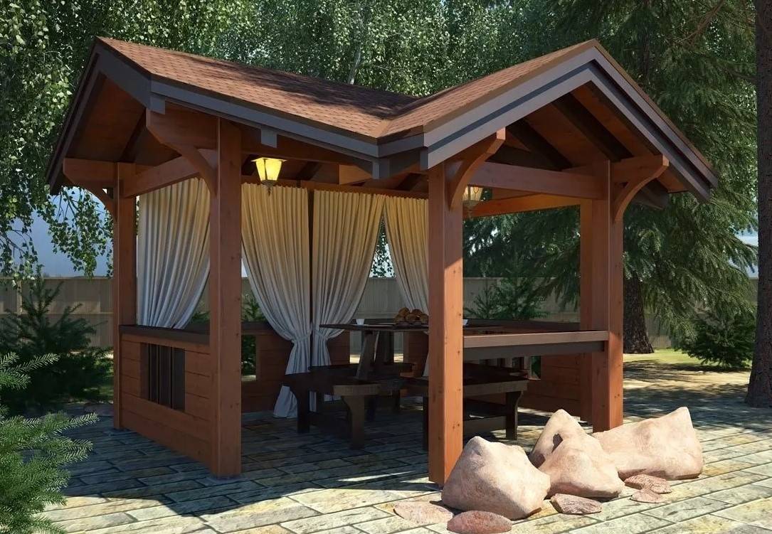 Беседки из бруса для дачи открытого типа