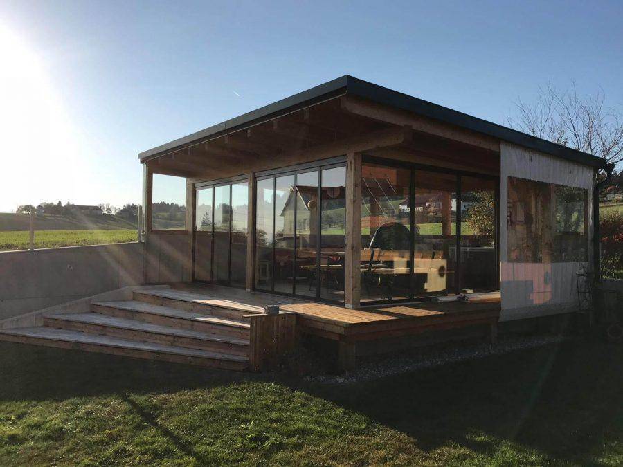 Среди устойчивых пород древесины – лиственница (традиционная в России), каштан. Экономные модели изготавливаются из сосны, пихты или ели, древесины которой требуется специальная обработка в автоклаве. Принцип строительства из наборных досок одновременно традиционный и современный, он подходит для шале, поставляемых в комплекте, потому что монтаж выглядит как детская игра.