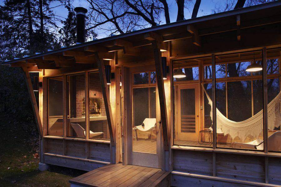 После того как монтажные работы закончены, можно приступить к её внутреннему декорированию и заполнению мебелью. Здесь важны желания и фантазия владельцев. Варианты украшения входа и стен вьющимися растениями, гирляндами, фонариками пользуются большой популярностью у дачников.