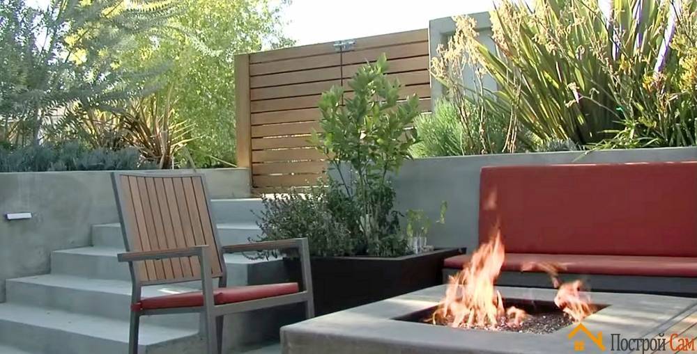 В ландшафтном дизайне сплошные линии не приветствуются, поэтому и, стараются разбивать различными элементами, чаще всего это лестницы, цветники, ниши или скамейки. Они не только вносят изюминку, разделяя, и в то же время соединяя воедино всю картину, но и зрительно расширяют или даже усложняют панорамную композицию. Это касается не только значительных террасированных цепочек, но и простых декоративных террас. Сами подумайте: небольшая возвышенная клумба, разделенная скамейкой, будет куда симпатичнее сплошной.