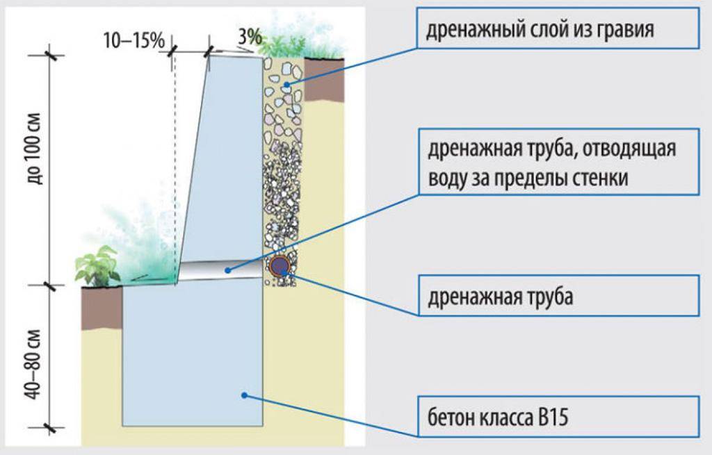 Правильно обустроенная система дренажа удаляет воду от задней стены опорной конструкции и предупреждает вымывание почвы.