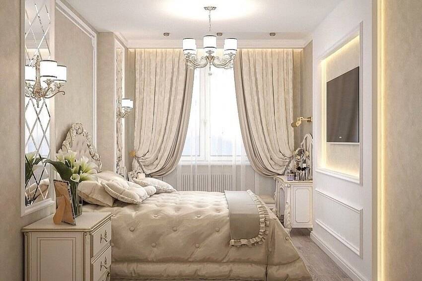 А вот для северной спальни даже светлому бежевому понадобится дополнительное освещение. Кроме центральной люстры стоит использовать настенные бра и точечную подсветку на потолке.