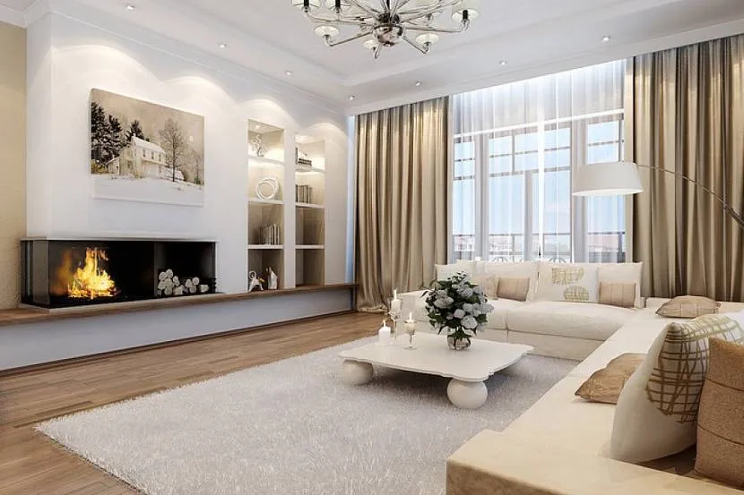 Оперируя оттенками цвета, можно зрительно расширить маленькую комнату или сделать более уютным слишком просторное помещение. Бежевый интерьер в пастельных тонах выглядит нежно и естественно. А если правильно внести яркие акценты, то гостиная приобретет индивидуальный шарм. На восприятие комнаты в светлых тонах сильно влияет освещенность: то, что в полумраке кажется мягким и нежным, на свету может приобрести элегантный и торжественный вид.