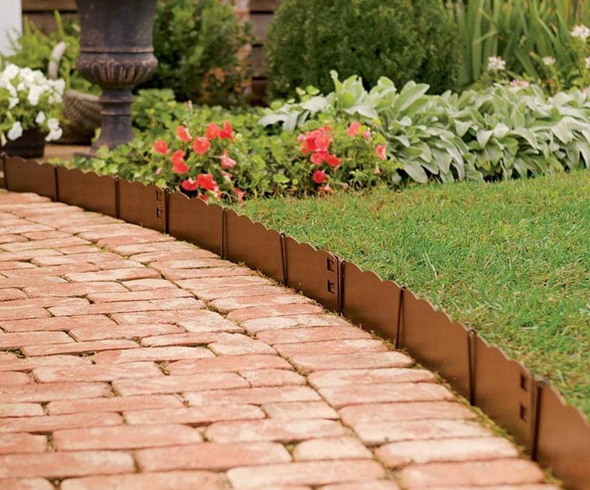Совет!Чтобы обозначить границы тех или иных культур, удобно пользоваться лентой коричневых оттенков. А при формировании оригинальных цветочных композиций уместно применять ограждения более ярких цветов.