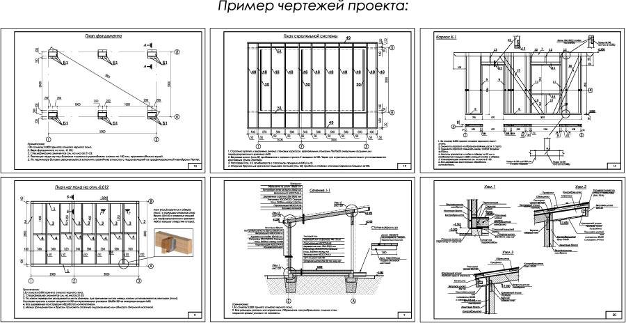 всеми необходимыми размерами, узлами и спецификацией строительных