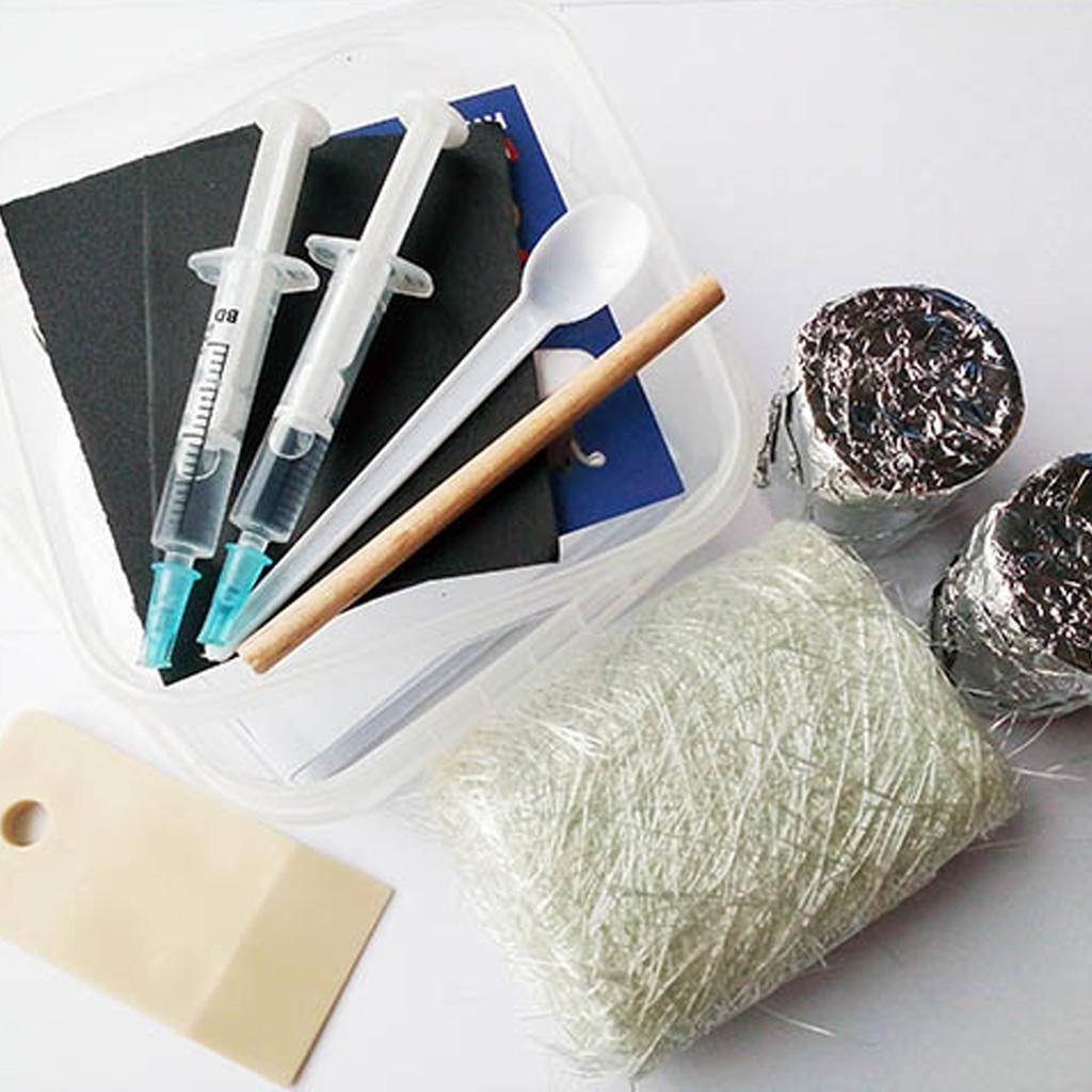 Эти комплекты обычно включают в себя специальную смолу, краску, иногда еще стекловолокно, которые нужно нанести на поврежденную область. После нанесения смолы и краски необходимо дать им высохнуть в соответствии с инструкциями на упаковке.