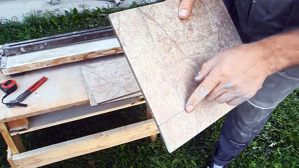 - Место разлома размечать резаком на изнаночной стороне плитки.
