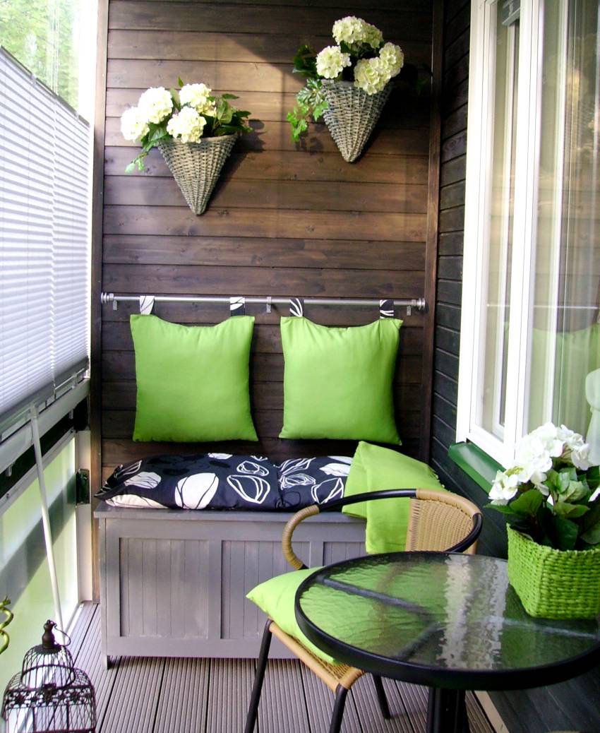 Когда балкон является продолжением жилой комнаты, его интерьер должен полностью сочетаться с ее оформлением. Если перепланировка не планируется, можно сделать авторский декор, добавить нотку оригинальности, необычные штрихи. Например, наклеить плитку, имитирующую натуральный камень, обить стенки деревом, украсить их витиеватой резьбой, повесить броские рольшторы.