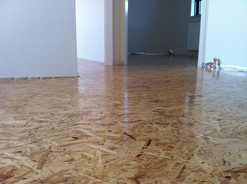 Для помещений, где ОСП укладываются в качестве финишного напольного покрытия, требуется гладкий пол с водоотталкивающим эффектом. Для этих целей на стружечную поверхность наносят толстый слой прозрачного эпоксидного состава, после застывания такое покрытие становится плотным, твердым и водонепроницаемым.
