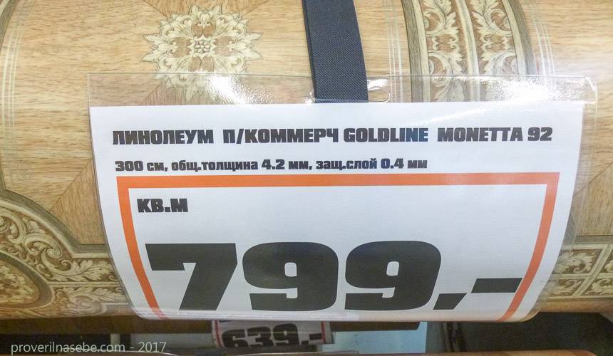 Однако даже такой слой не будет панацеей. К тому же стоимость данного конкретного линолеума составляет 799 рублей за квадратный метр: