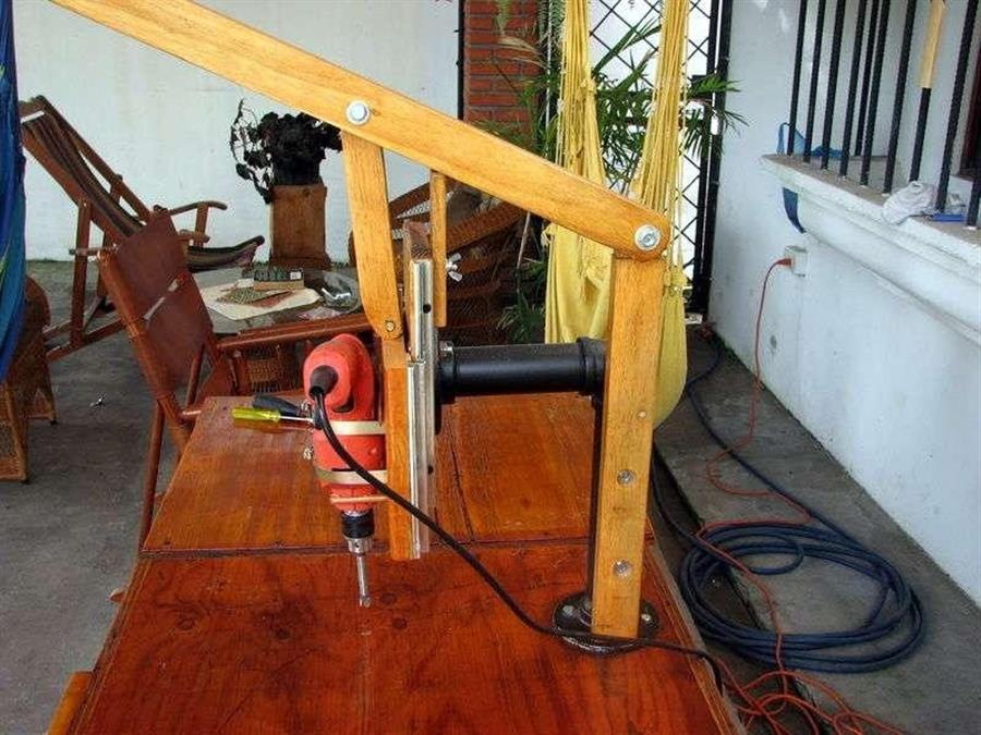 Самой распространённой конструкцией можно считать станок, выполненный из ручной или электродрели, которую можно выполнить съёмной, для возможности использования её вне станка, и стационарной.