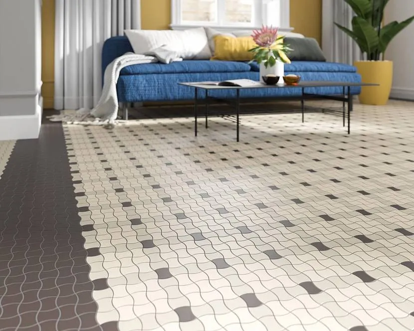 От монотонных вариантов переходим к смелым узорным вариантам. Далматинцы всегда были в моде. Попробуйте трансформировать однообразный белый пол в модную пятнистую палитру.