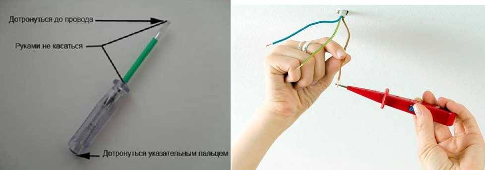 При монтаже розеток, выключателей и других элементов домашней сети питания используются индикаторы — специальные отвертки, определяющие токоподающую жилу.