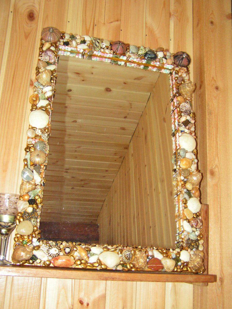 При выборе материалов для декора важно помнить о том, что они должны быть прочными и влагоустойчивыми. Зеркала, декорированные такими материалами, можно повесить хоть в ванную, хоть в баню