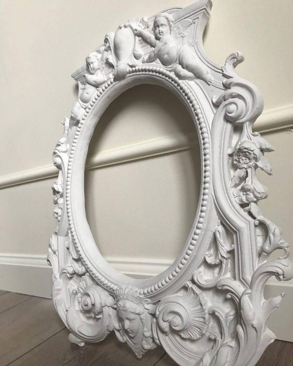 Если вы задумали оформление рамы в стиле ампир или барокко, прекрасным вариантом станет декор зеркала с помощью пенопластового плинтуса. Помимо внешней эстетичности, относительной простоты изготовления, небольшого веса конструкции, влагостойкости и лёгкости в уходе – это один из самых бюджетных вариантов.