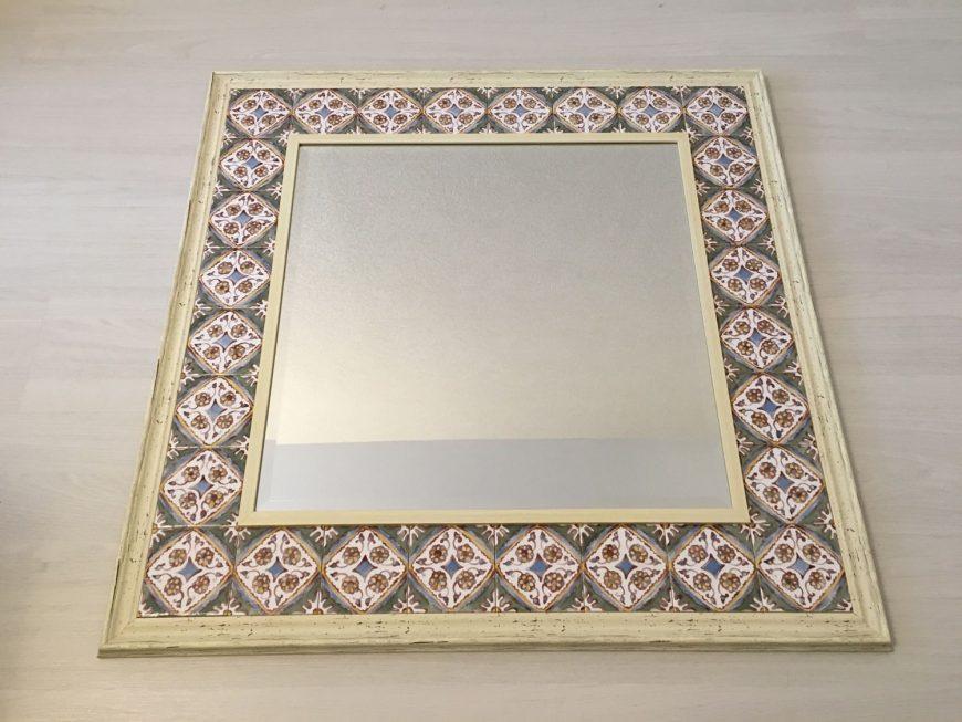 - Вырезанные узоры ткани, наклеенные на края зеркала и рамку;