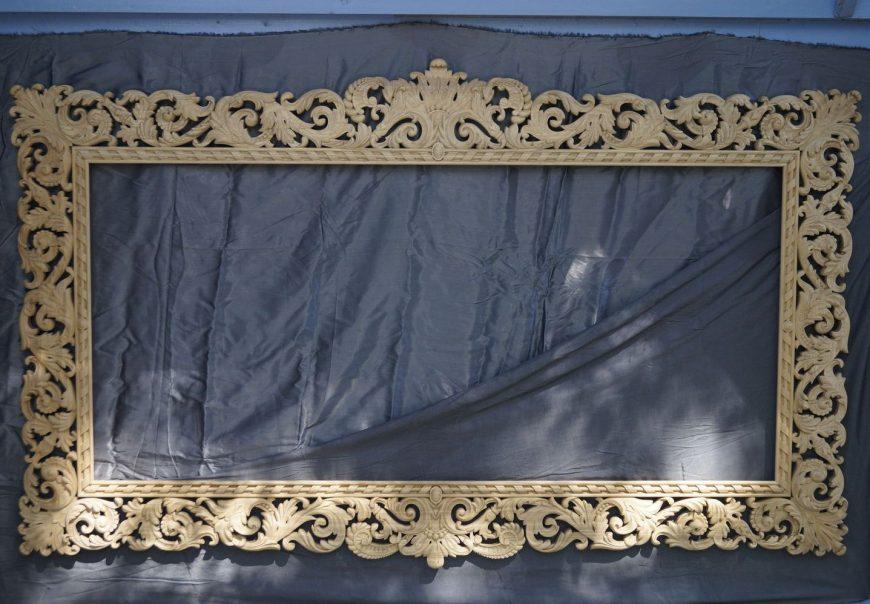 Необычно и дорого смотрятся багеты из старых резных наличников. Такие сейчас встречаются редко, но зато в деревнях их можно достать практически бесплатно, договорившись с хозяевами домов под снос.