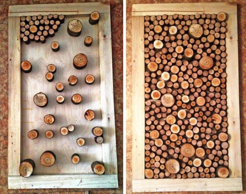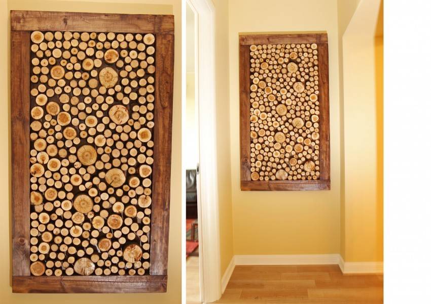 Деревянное панно из спилов веток украсит даже самый простой интерьер, а сделать его совсем несложно